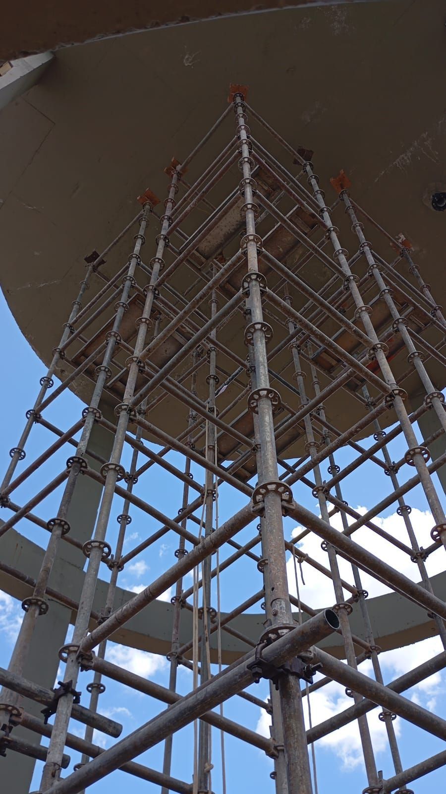 - Estrutura com torre de escoramento e cimbramento para estruturas mais altas e mais pesadas